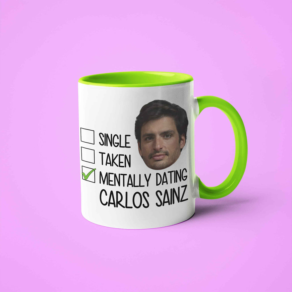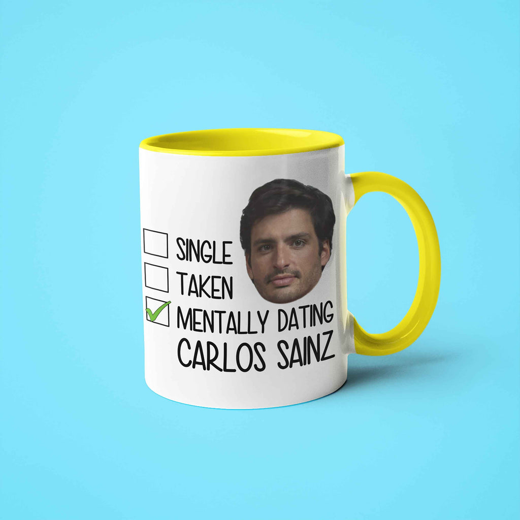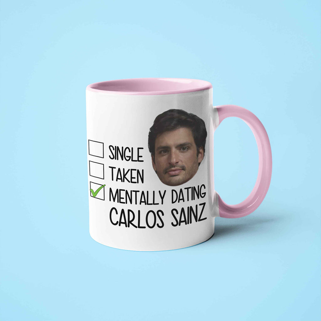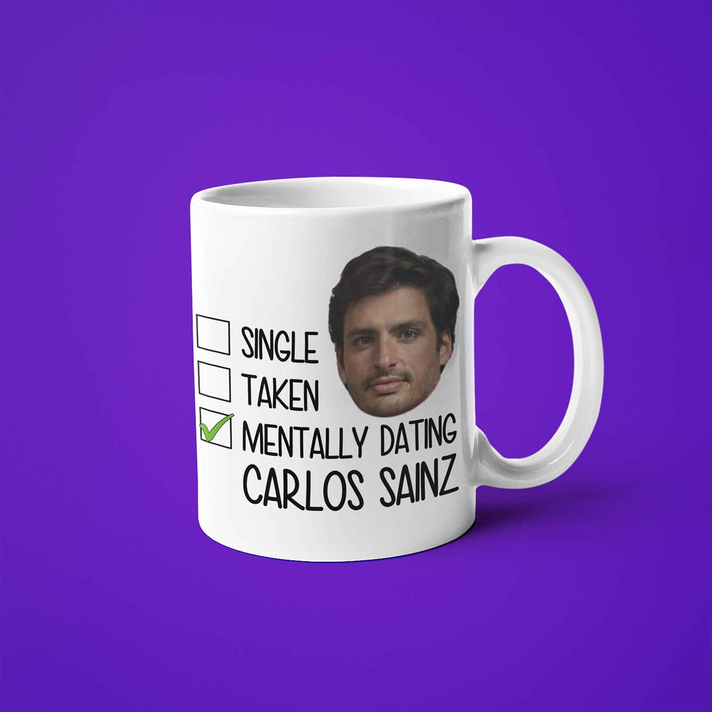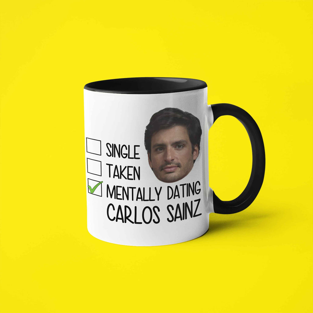 For all the fans who can’t get enough of Carlos Sainz’s stunning good looks and charismatic charm, this "Mentally Dating Carlos Sainz" mug is the perfect way to show off your F1 crush! Whether you’re sipping your coffee or fantasizing about this Spanish heartthrob, this mug is a playful tribute to Carlos’s mix of speed, style, and that charming smile. With his impressive racing skills and undeniable good looks, Carlos is not just a driver—he’s the ultimate F1 dream. A must-have for any girl who’s mentally dating this Ferrari star!
