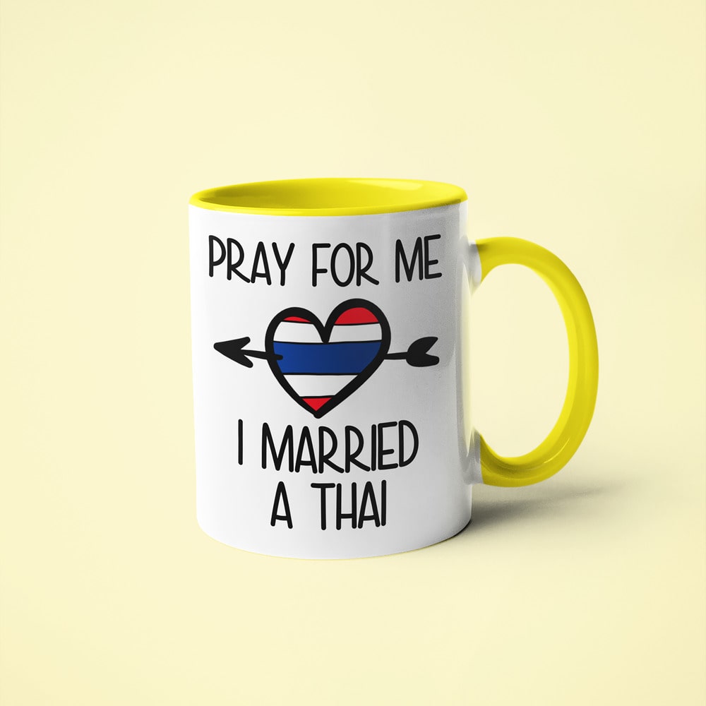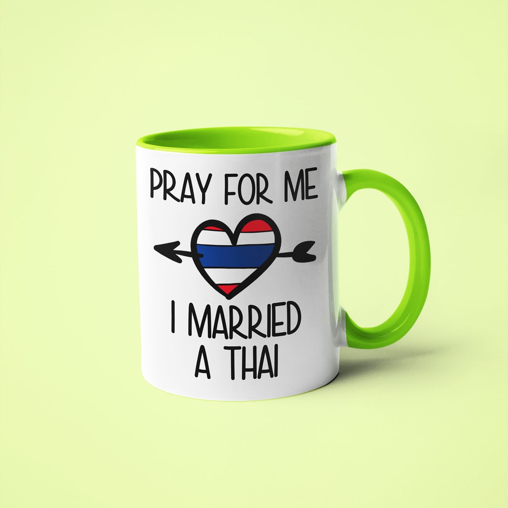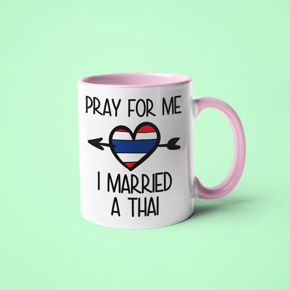 This mug is a playful tribute for anyone married to a Thai wife or Thai husband, reflecting the strong family values and cultural pride of Thailand. Being part of a Thai family means close bonds, respect, and shared traditions, and this design captures the everyday experience of life with a Thai spouse in a simple and humorous way.