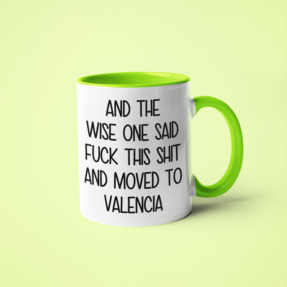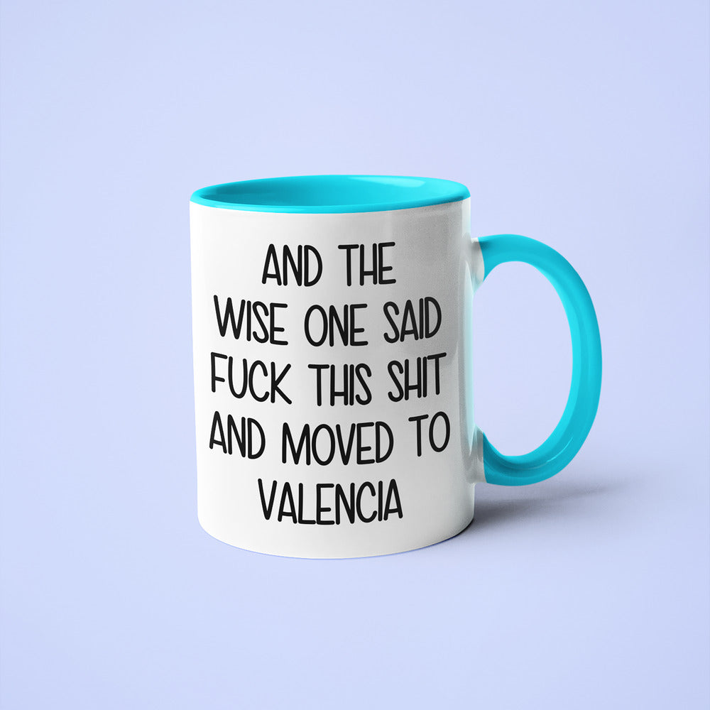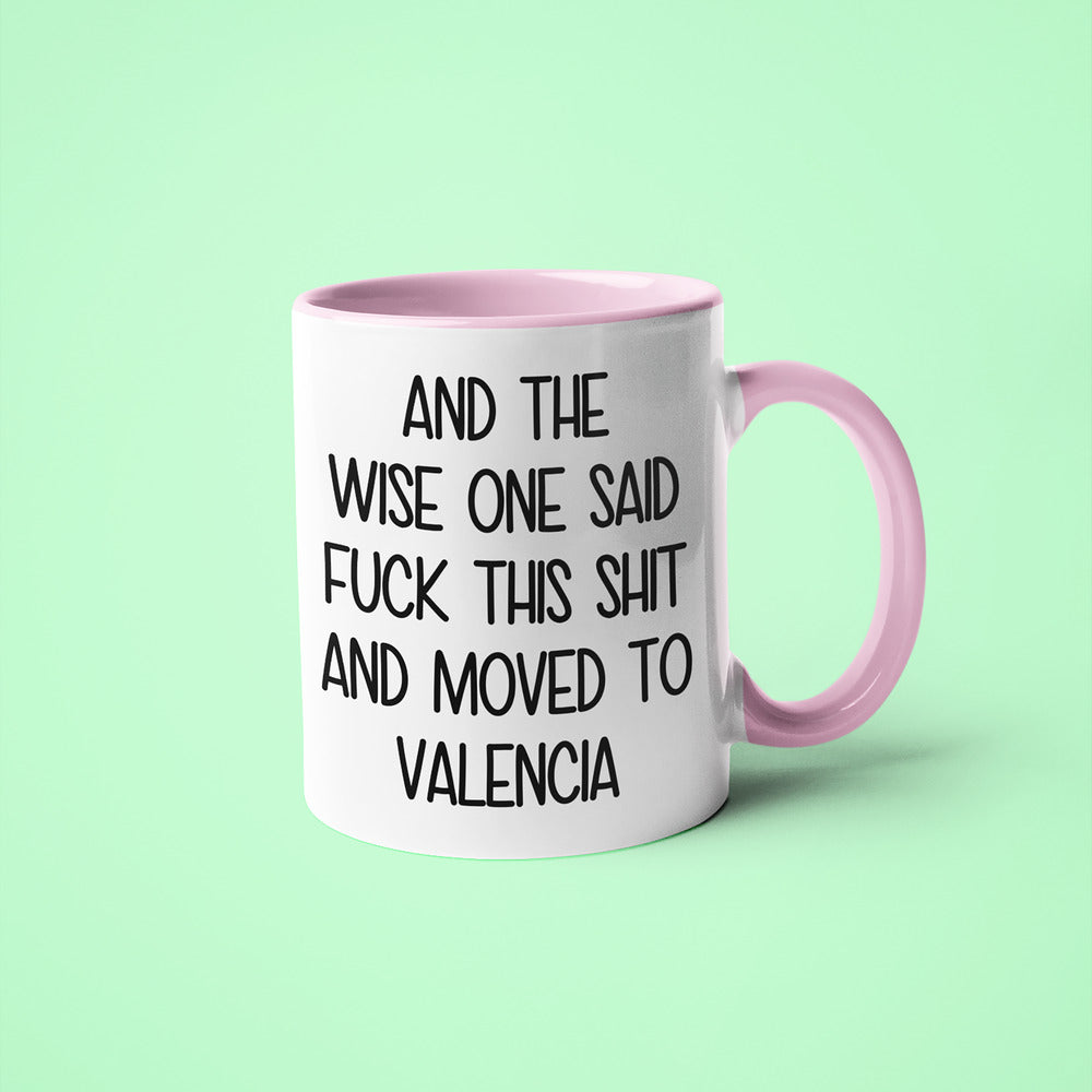 Bring humor and warmth to your new adventure with this playful mug that says, "And The Wise One Said Fck This Sht and Moved to Valencia." Perfect for anyone relocating to Valencia, Spain, starting a fresh chapter in one of Spain’s most vibrant cities, or embracing life in Valencia. Whether you're moving to Valencia from the United States, planning to live in Spain for a month, or relocating for work or family, this mug makes a thoughtful and memorable moving to Valencia gift. Celebrate your move with this unique design, ideal as a gift for someone moving to Spain, a keepsake for yourself, or a fun addition to your coffee routine. Whether you're dreaming of the Mediterranean coast or settling into Spain's charm, this mug is the perfect companion for your journey.